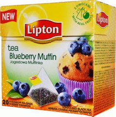 Walory smakowe:Pewnego dnia zobaczyłam w telewizji reklamę 2 nowych babeczkowych tworów od Liptona. Ponoć smakują jak babeczka i ma się ochotę je zjeść. Hmmm? Czy na prawdę? Przez długi czas nie mogłam znaleźć ich w żadnych sklepie, by się o tym przekonać. Minęło trochę czasu , na pewnym forum nie związanym z herbatą dziewczyny zachwalały muffinkową herbatę - a więc w którymś sklepie muszą ją w końcu mieć? Pierwszy egzemplarz babeczkowej herbaty kupiłam w Carrefourze. Wybór padł na czarną herbatą wzbogaconą aromatem jagodowych muffinek. Zieloną z truskawkową babeczką kupiłam dopiero po jakimś czasie.